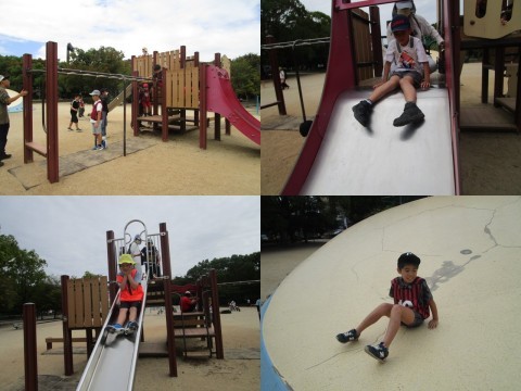 公園に着いてから、南こども広場とボウケンノモリに分かれて遊びました。