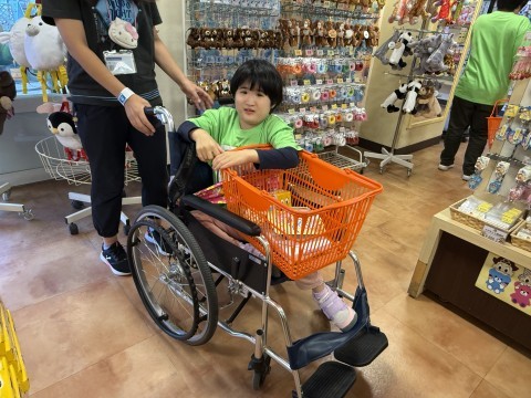 午後からも乗り物を堪能して、お土産を買いました。お目当てのものを先生と一緒に探してレジに並びます。無事、買い物を済ませホテルに向かいます。