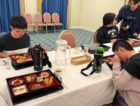 岡山プラザホテルに到着して昼食です。