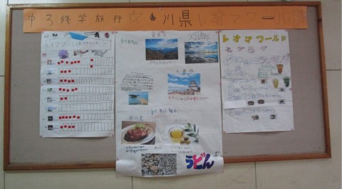 ある生徒が、「修学旅行の壁新聞があるので見てきてください。」と教えてくれたので見に行きました。