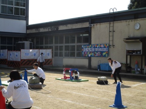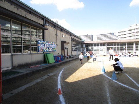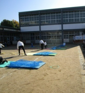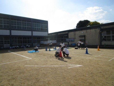低学年部の体育発表会は,学年ごとに開催されました。保護者の方が見に来てくださっていて,子どもたちは,手を振ってとても嬉しそうです。「かっこいいにんじゃになるんじゃ~」というテーマのもとに競技が行われました。ところどころに,忍者を思わせる「ニン,ニン」というポーズもありました。今までの練習では,なかなかうまくいかなかったところができた人もいて,子どもたちの可能性と成長を感じた体育発表会でした。
