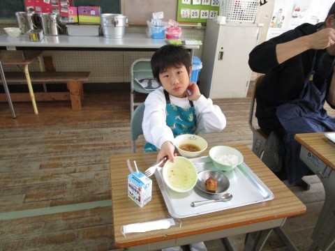 「もう、おかずを食べたよ。」と空っぽになったお椀を見せてくれました。