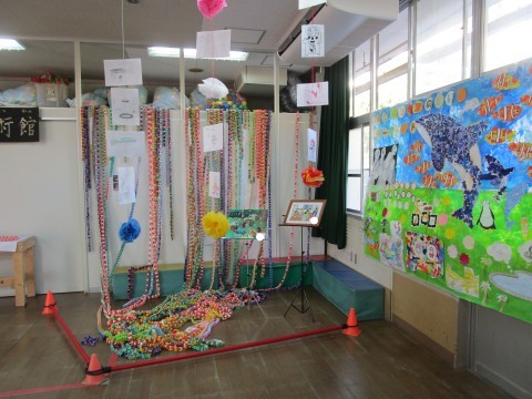 アートに溢れた空間を演出。子どもたちの作品が並びました。