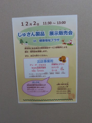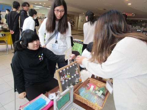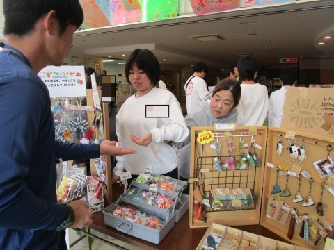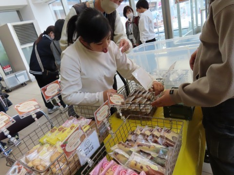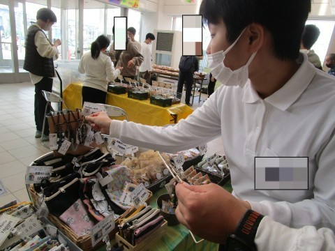 じゅさん製品販売体験に健康福祉プラザに行ってきました。じゅさんあっと堺の担当者から働くことについてお話を聞いた後,実際にそれぞれのお店に分かれて販売のお手伝いをさせて頂きました。「いらっしゃいませ!」「これおすすめです!」など,自らことばをかける生徒や物品整理,お客さんとのやり取りもすすんで行う姿が印象的でした。