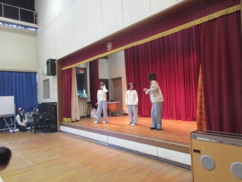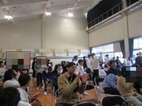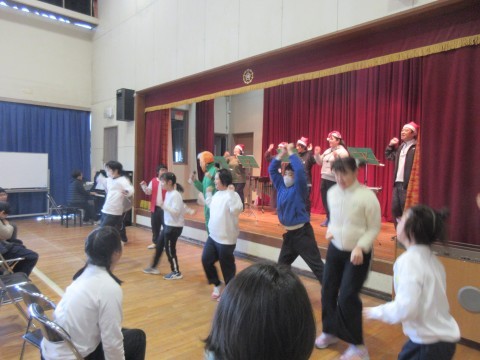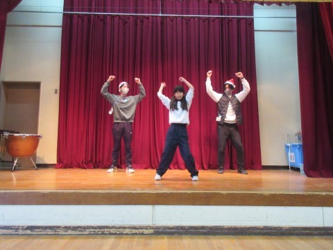 中学部では、2学期最後のお楽しみ会がありました。生徒によるダンスや先生方の歌の発表など、盛りだくさんの内容で体育館はとても盛り上がりました。
