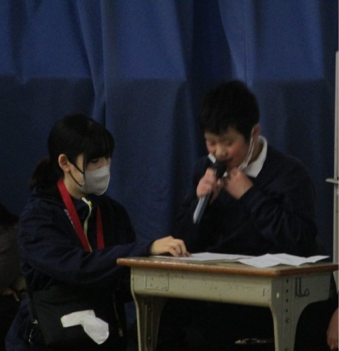 中学部は、各学年の代表が冬休みの楽しかったことを発表しました。
