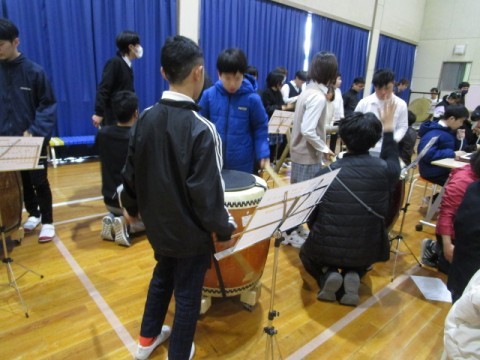 1/31の音楽発表会に向けて本格的な練習が始まりました。校内には,ポスターも貼られています。体育館では,中学部2年生が初めての体育館練習を行いました。立ち位置を確認したり,場所の調整をしたりしています。