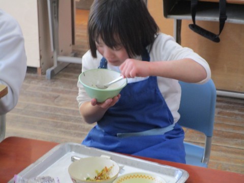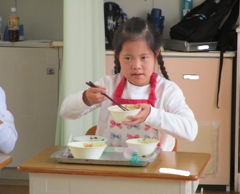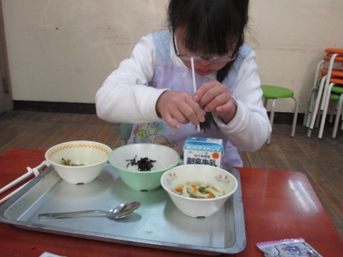 小学部では、もう食べていましたが昆布の佃煮が気に入った子がいて美味しそうに食べていました。