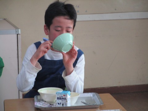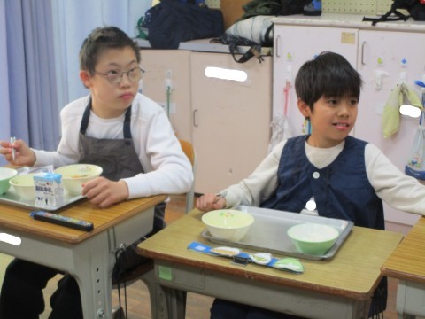 午前中の勉強が終わったらみなさんお待ちかねの給食です。