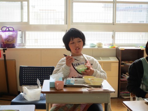 給食を取りに行っていた中学生が「うどん、おかわりするねん。」と嬉しそうに話していました。
