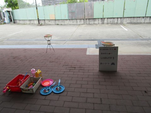 風の向きを調節したり工夫をして上手にシャボン玉ができました。