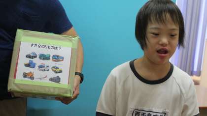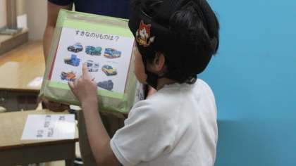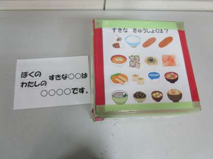 活動当初は「ぼく、(わたし)のすきな〇〇は△△です」と書かれた文字カードを見ながら行いました。