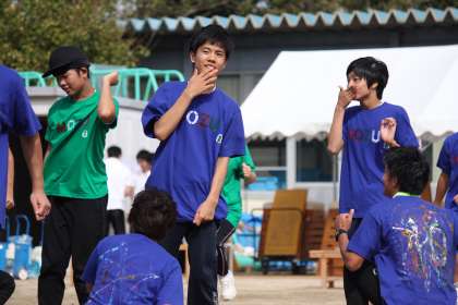 授業で「MOZU」と描かれた各クラスお揃いのTシャツが