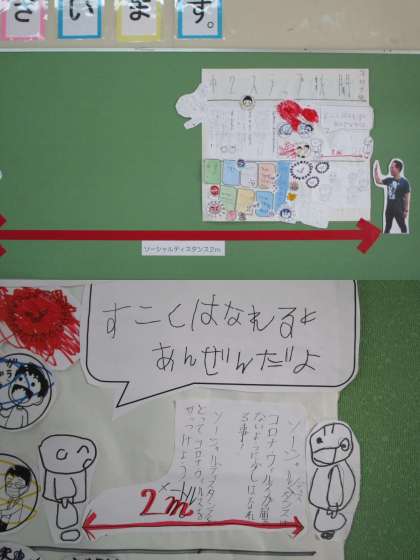2mのソーシャルディスタンスはこれぐらいですよ。手洗いうがいが大事ですよ。と書かれています。