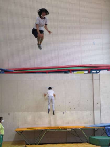 「トランポリン」クラブは、とても高く飛ぶ生徒がいてうまくシャッターチャンスが切れませんでした。音楽に合わせてリズムよく飛びます。宙に浮いて気持ちよさそうでした。