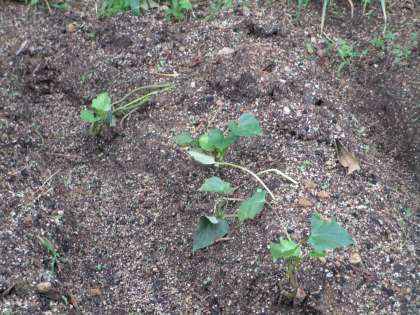 畑では、児童生徒の植えたなすびやきゅうりやさつまいもがすくすく育ってます。