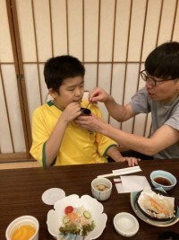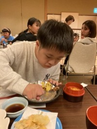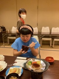 お風呂のあとは、お待ちかねの夕食です。いただきます。
