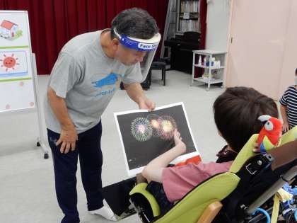 朝の会 公開日 2020/08/06 更新日 2020/08/06 活動の紹介 今日の朝の会では、「花火」のお話を聞きました。2人とも花火に興味津々。今年は花火があまり見れないかもしれませんが、みんなでホワイトベリーの夏祭りを歌い、夏の気分を味わいました。