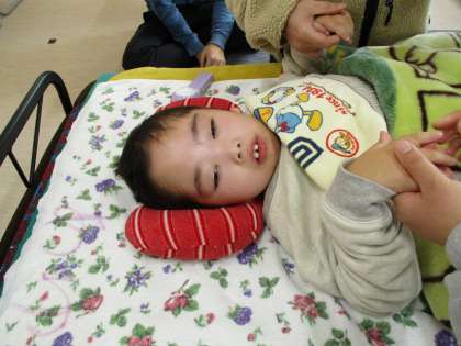 個別学習 公開日 2021/02/18 更新日 2021/02/18 活動の紹介 眠そうなT君でしたが、タンバリンをたたいているうちにだんだんと目が開いてきました。指のマッサージでは、さらに大きく目が開きます。「出して、引っ込めて1、2、3♪」の曲に合わせて、腕を動かし、ふれあい遊びをするT君。楽しそうです。