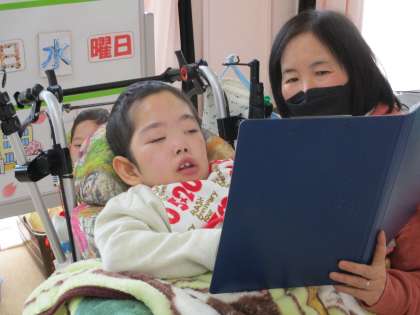 朝の会では,連絡帳を見ながら今日の体調についてみんなに報告したり,カレンダーや天気の確認,今月の歌を歌ったりします。今日の歌の時間には,明日の節分に向けて,「鬼は外,福は内♪」を歌い,節分遊びを楽しみました。