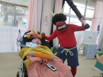 節分 公開日 2024/02/01 更新日 2024/02/01 活動の紹介 2月3日は節分ですね。少し早いですが分校にも鬼がやってきました。 Aさんは豆バズーカを使い、豆まきをしました! 最後は鬼さんも心を入れ替え、仲良く握手をしてお友だちになりました。
