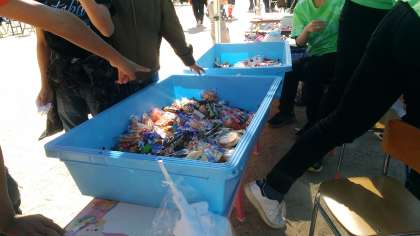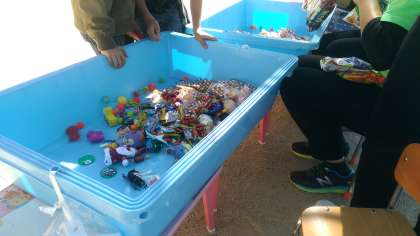 開店10分前になったので、お菓子すくいのお菓子を投入しました。
