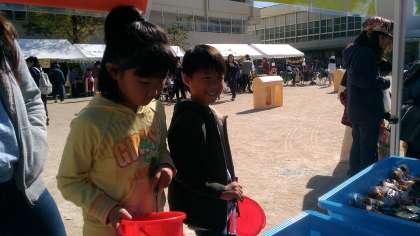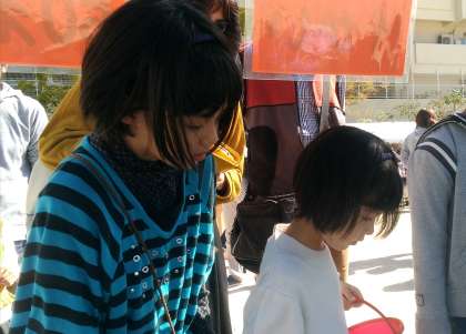 お菓子すくい、たくさんのお客さんが来てくれています!
