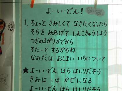 今日から新しい歌を楽しんでいます。すてきな歌詞の歌です。きっと大好きな歌になると思いますよ!