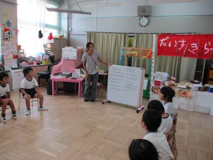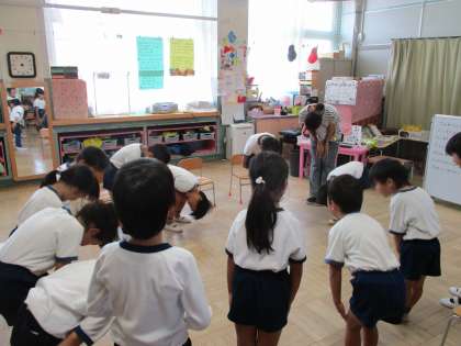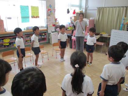 朝のあいさつ,今日の予定の確認の後,つくってあそぼうの名前を決めますよ。