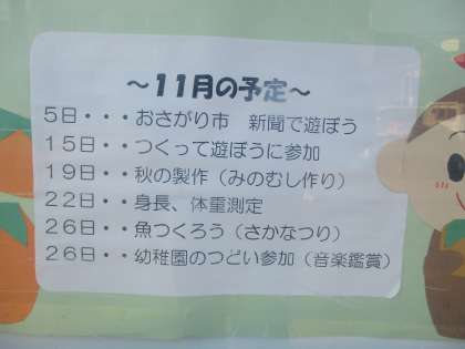 本日(11/8)は木曜日ですが,たんぽぽがない日となっております。12日(月)のたんぽぽもありません。