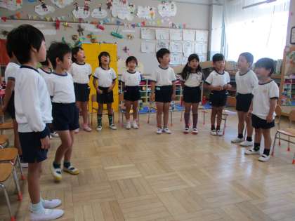 今朝も,「よーい どん!」を歌いました。