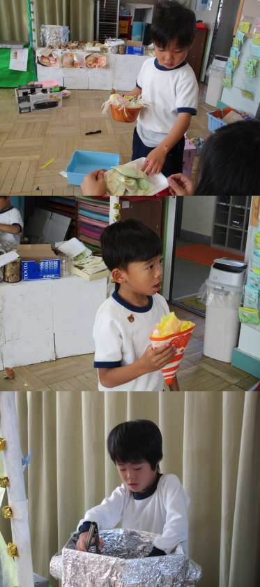 また,ラーメン屋さんごっごもできるようになってきました。なんと,スマートフォンで注文を受け付けてくれるそうです。注文の受け方もよくよく考えてみると難しいですね。