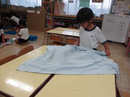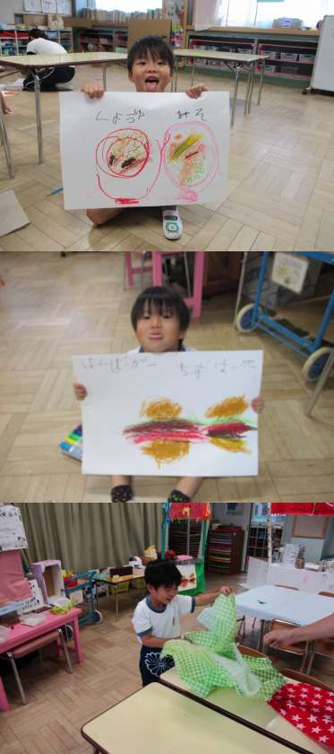 今日は,メニュー表を作って,テーブルクロスを用意しました。開店に向けて準備が整ってきましたよ。
