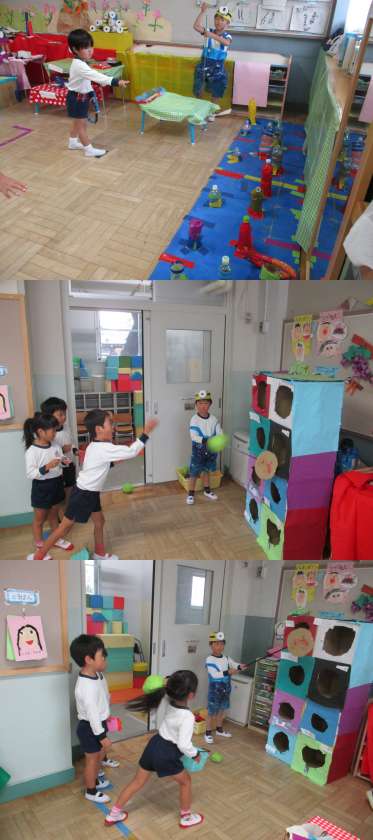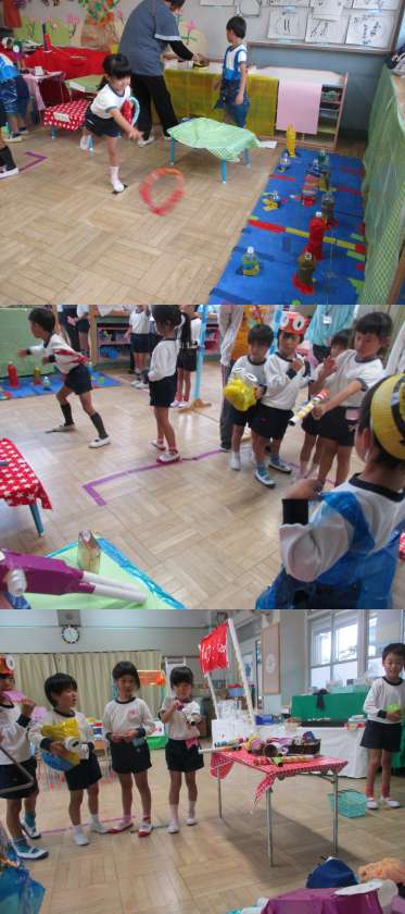 3つあるゲームコーナーはどれも大人気。輪投げも射的もボール投げも,ねらいどおりできるかどうかが楽しいところですね。景品をもらって喜んでいましたね。