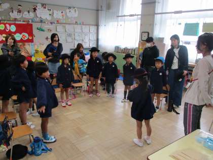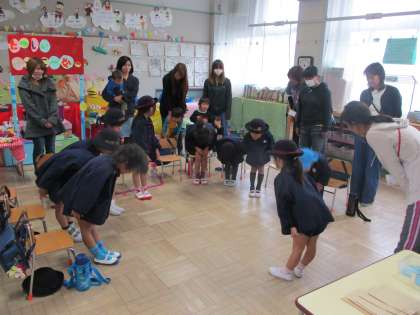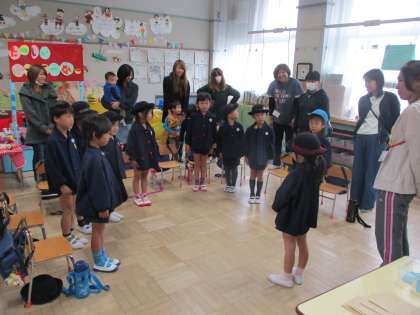 事務連絡,提出物についてお話ししました。明日はいよいよ「つくってあそぼう」ですね。おうちの方々とともに楽しめたらと思っています。