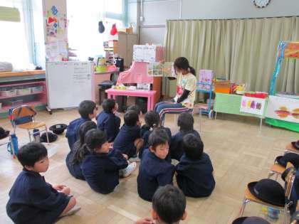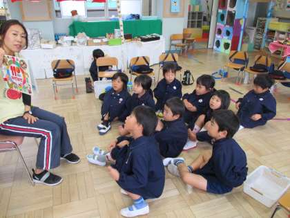 わくわくつくってらんどが終わり,子どもたちは着替えて読み聞かせをしてもらいました。
