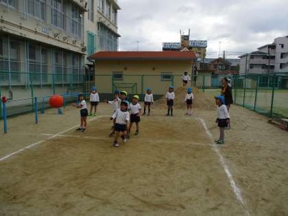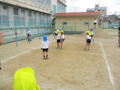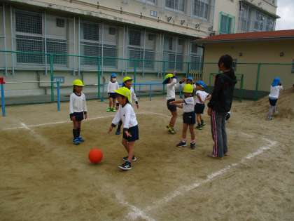 今朝も元気にドッジボールをしましたよ。