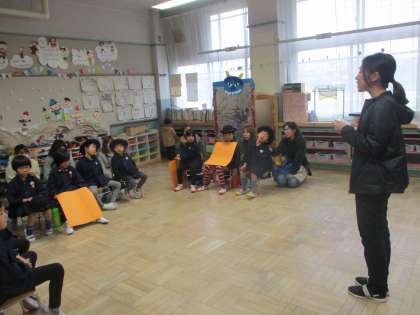 担任から今日のエピソードと事務連絡を話しました。また,堺姉妹友好都市幼稚園児図画交流展の案内もしました。次のとおり行われます。
