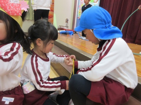 誕生会では,そら組さんが,遊びのコーナーを考えていっしょに遊んでくれたり教えてくれたりしました