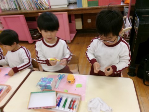 部屋では,うさぎ組さんといっしょにそら組さんへ渡すプレゼントをつくりましたよ!