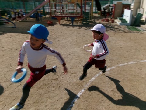 そら組の子どもたちは,うさぎ組さんにかっこいい走りを見せようと張り切っていましたよ。