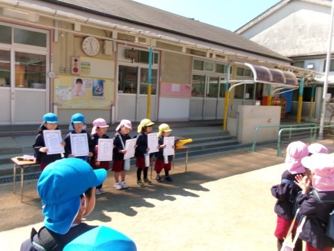 表彰された子ども達はとてもうれしそうで,おうちの人に写真を撮ってもらってにこにこしていました