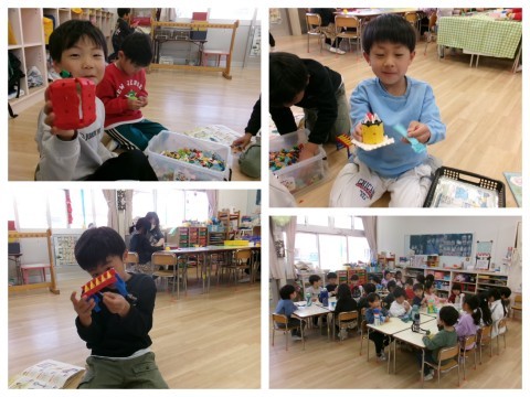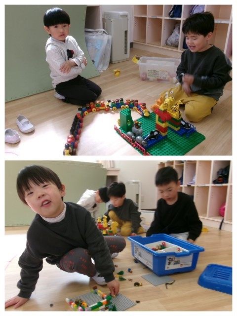 お部屋ではブロックでサファリパークを作っていました🦁🦒🌴「ここでサルがバナナ食べて,キリンが草食べてるねん💓」「車でたくさんのお客さんが見に来ててペンギンも来てるんやでっ!」と教えてくれましたよ(*^-^*)