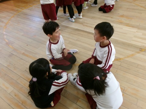 いいところみつけでは,「走っているところがかっこいい!」「コマが上手!」などとお友達のいいところを見つけるのが上手になってきました。言ってもらった子どもたちは,少し照れくさそうに,そして,嬉しそうにしていましたよ!友達に褒められると嬉しいね♪
