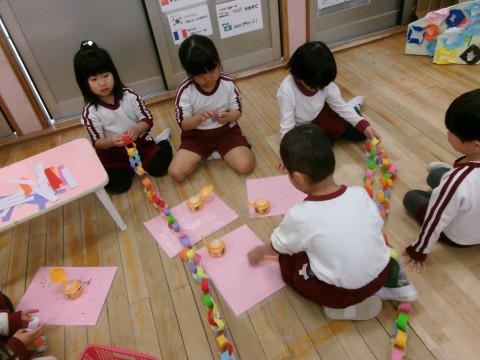 今日は,部屋で,そら組さんのプレゼントづくりの続きをしたり,輪つなぎをしたりしました