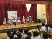 一輪車に乗っていろんなところに行ったり、手をつないだりして楽しそうに乗っていました。また、もう少しで乗れそうなお友達にも優しく声をかけ励ましていました。3歳児もホッピングやバランスカーに挑戦して頑張っていますよ。