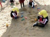 昨日,トラックをつかってかけっこをしました。そのことがきっかけとなり,今日は自分たちで友達を誘い合ってリレーを始めていました。「チームに分かれて」「人数が違うやん」など,自分たちで考えながら遊びをすすめる姿から,年長らしさを感じました。