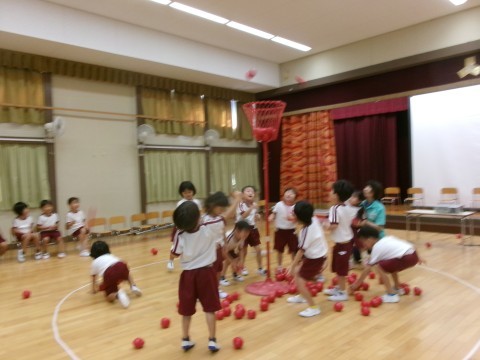 玉入れでは,今日はうさぎ組さんの最高記録を更新!35個も入りました。