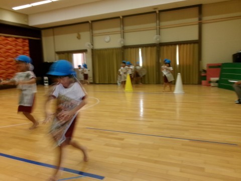 今日は実習生の保育がありました。「新聞ダッシュ」をして遊びましたよ。