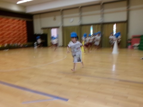 体を存分に動かし,走る楽しさを感じていました。その後,園庭でのリレーも力いっぱい走ることができましたよ。